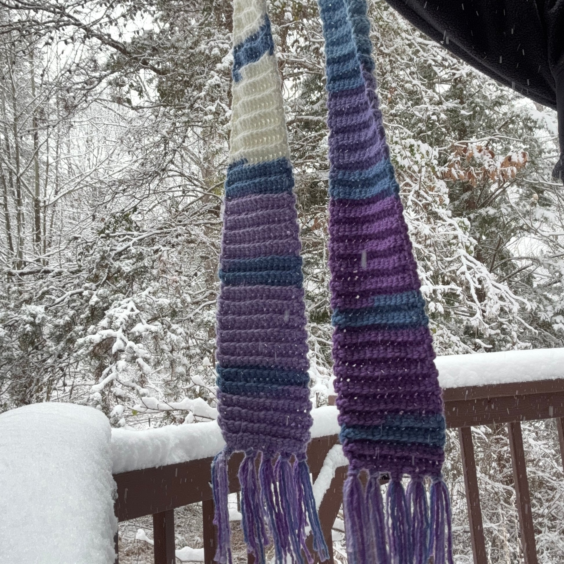 Wrap yourself in cozy, handmade warmth with this ribbed crochet scarf featuring soft shades of light and dark blue, light and dark purple, and white. The textured ribbed stitch adds stretch, depth, and a clean, timeless look that makes this scarf both stylish and comfortable.